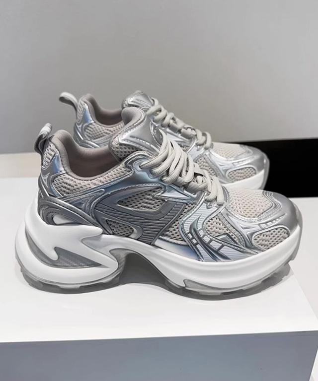 【shoes365】パッチワークデザイン厚底メッシュスニーカー