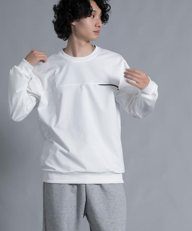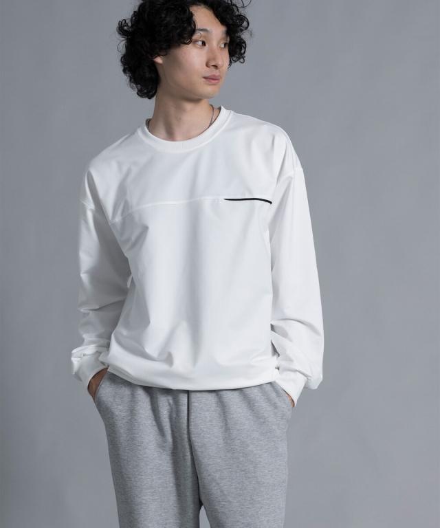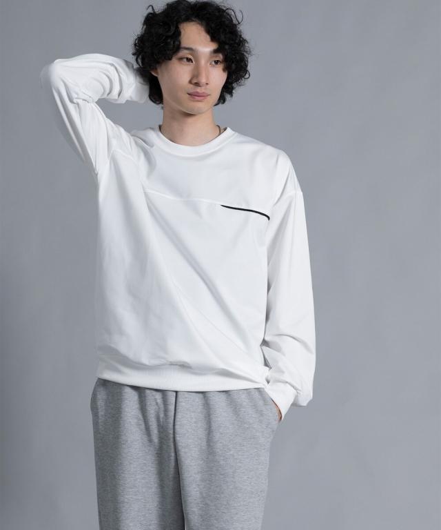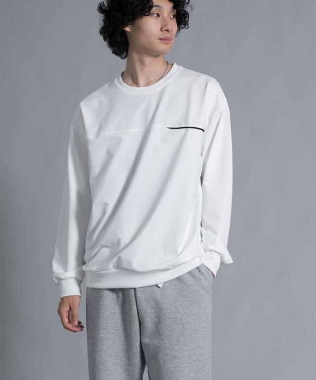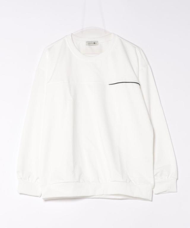 『胸元に入ったラインアクセントが上品な印象にしてくれるプルオーバー。』