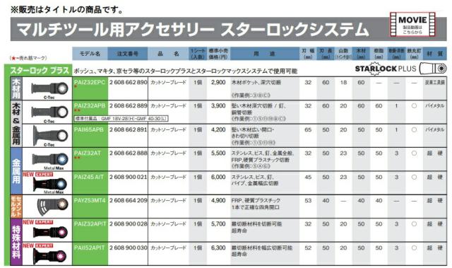 ボッシュ、マキタ、京セラ等のスターロックプラスとスターロックマックスシステムで使用可能