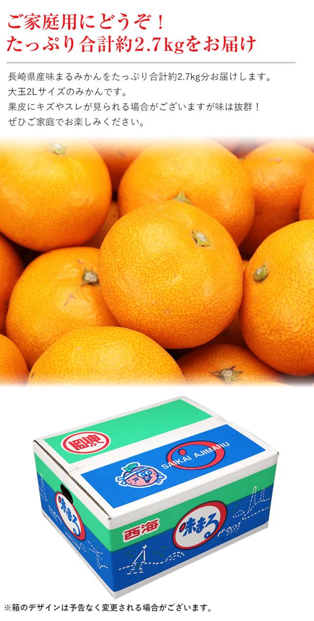 みかん 味まるみかん 大玉 糖度12度 2.7kg 長崎県産 ご家庭用 2Lサイズ JAながさき西海 常温便 同梱不可 指定日不可