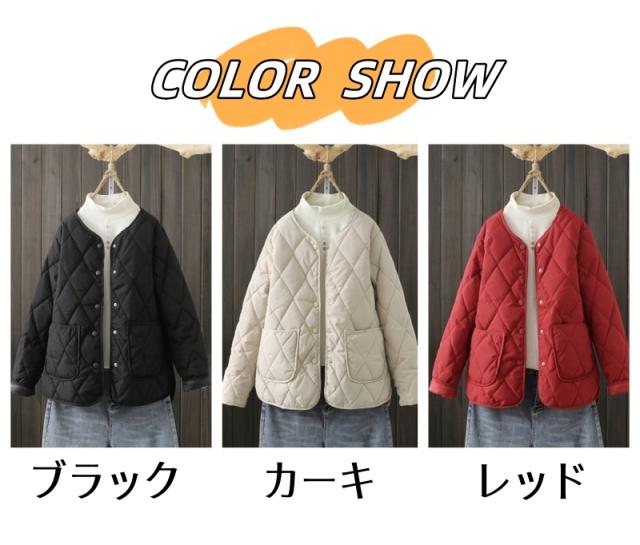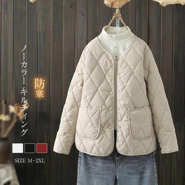 ノーカラー キルティング ジャケット レディース アウター トレンチコート 羽織り 中綿 コート 防寒 キルティング 秋 冬