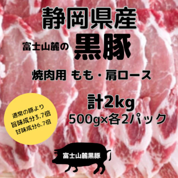 国産 豚肉 黒豚 2kgセット もも1kg 肩ロース1kg 静岡県産バークシャー 送料無料 豚肉スライス 豚 黒豚肩ロース 黒豚もも肉 冷凍 焼き肉 焼肉用