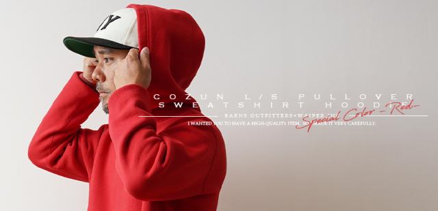WAIPER×BARNS OUTFITTERS BR-3007WP COZUN L/S プルオーバー スウェットパーカー 日本製 ”WAIPER RED”【Cx】【T】