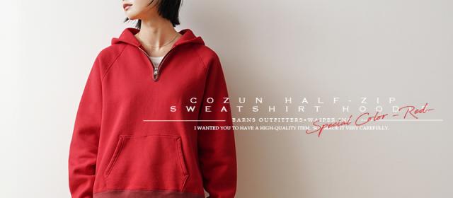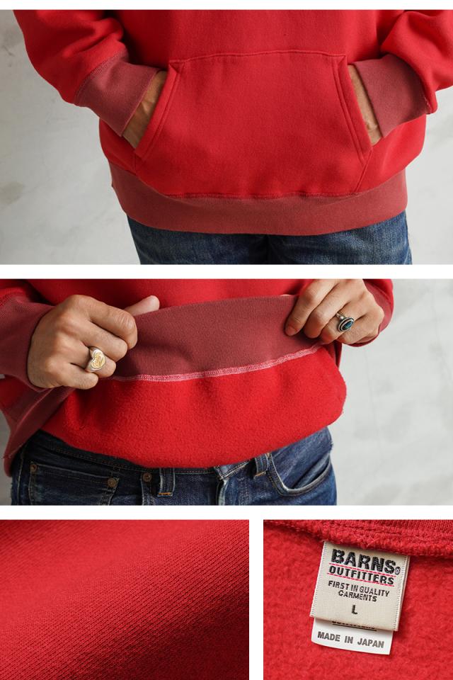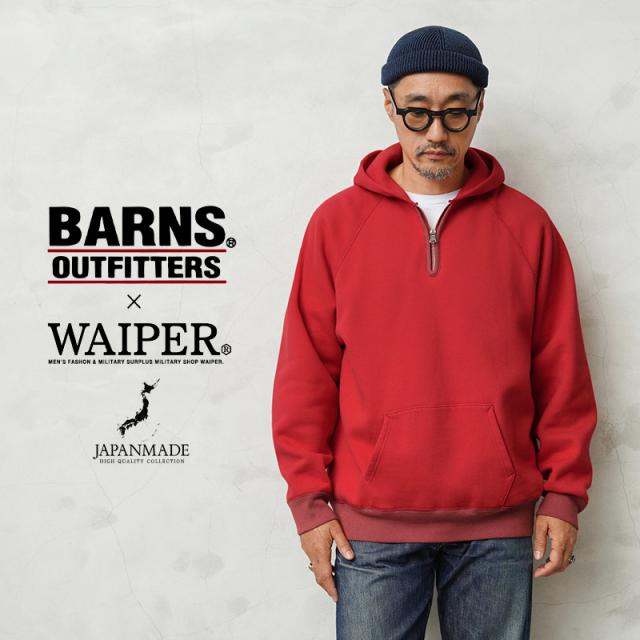 WAIPER×BARNS OUTFITTERS BR-3042WP COZUN L/S ハーフジップ スウェットパーカー 日本製 ”WAIPER RED”【Cx】【T】