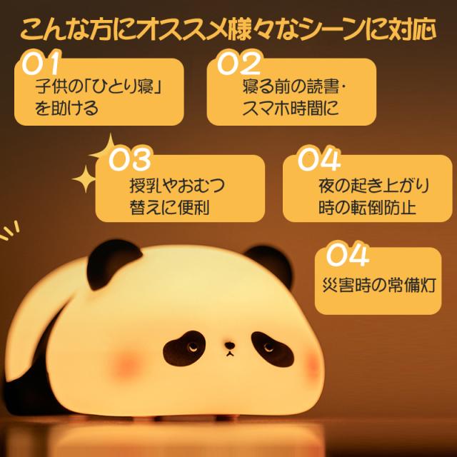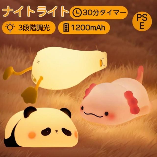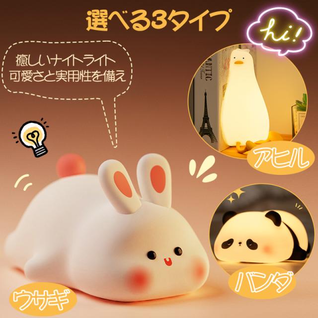 ふにゃふにゃとしたシリコン製になっているかわいい眠りパンダ/アヒル/ウサギ型ナイトライト。かわいいキャラクターのデザインので親しみやすく、子どもや大人が安心感を得られるでしょう。