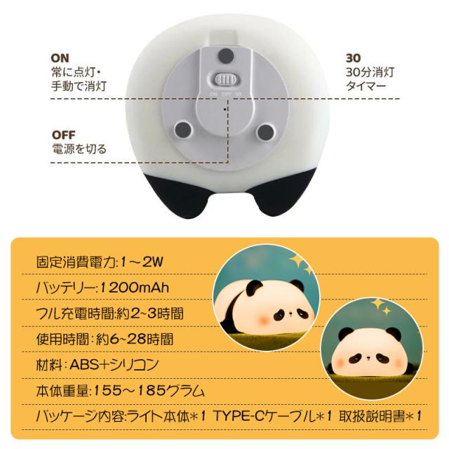 - プレゼントとして購入しました。ふにふにしたライトのパンダは勿論、箱も可愛かったので満足です。