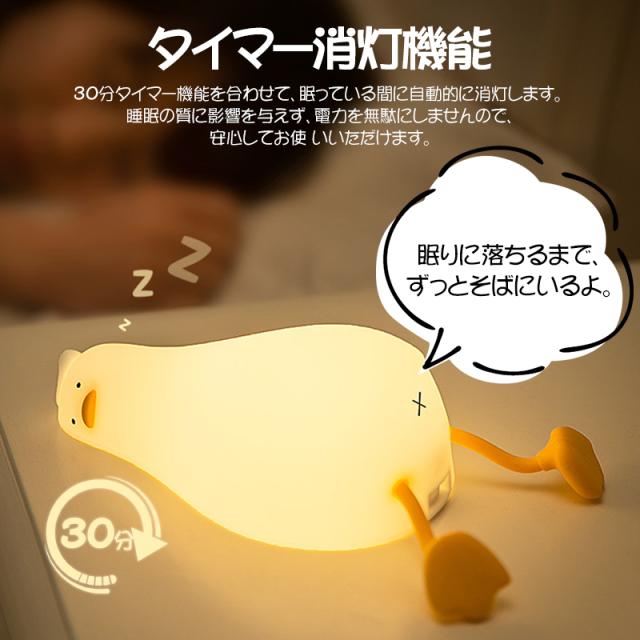 当ダックライトはシリコン製の足があり、ちょうどいい角度が作れ、スマホのホルダーとして使えます。スマホで動画や小説、生放送などを見ることが便利になります。また30分タイマー機能が付き、とても実用的な枕元ライトです。