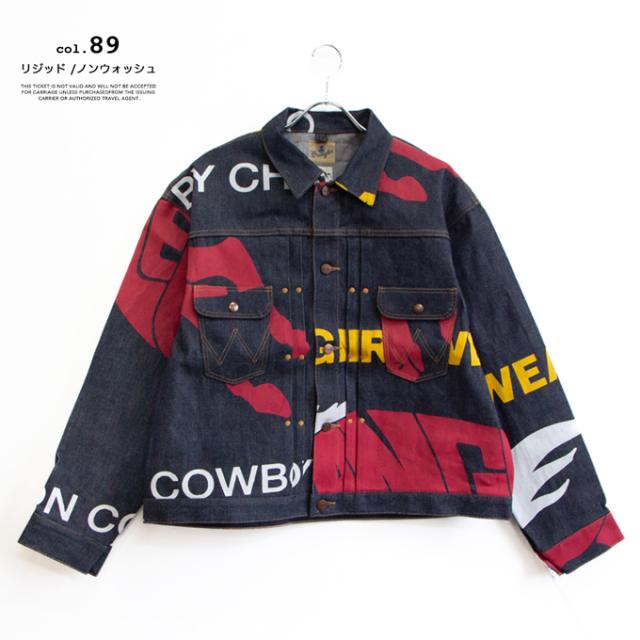 デニムバナーのデザインをプリントした生地を作成し、そのままジャケットに落とし込み、スペシャルな「111MJ」デニムジャケットを制作。バナープリント生地をそのまま裁断・縫製しているので1つ1つプリントの出方が異なるのもこの商品ならではのスペシャル仕様。フィットはややルーズめへリサイズしているので、トレンドのオーバーサイズ仕様。 |