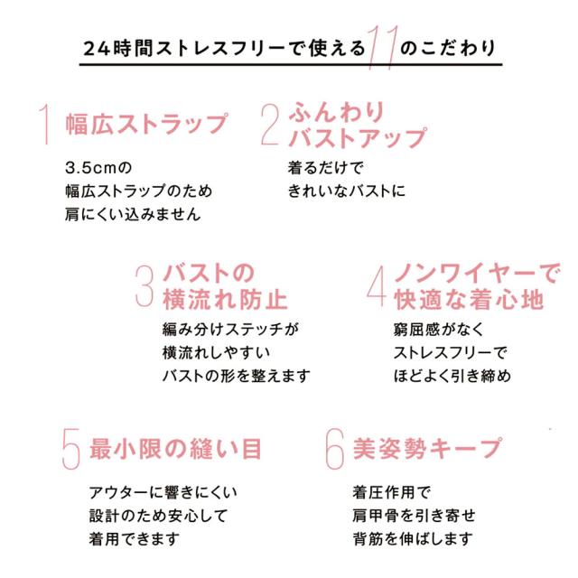 ノンワイヤー ブラトップ タンクトップ ナイトブラ スポーツブラ 揺れない バストライン ストレスフリー レディース 24時間着用OK 3D縫製 立体構造 ストレッチ素材 ムダ肉スッキリ ヴィーナスナイトブラトップインナー inf-23