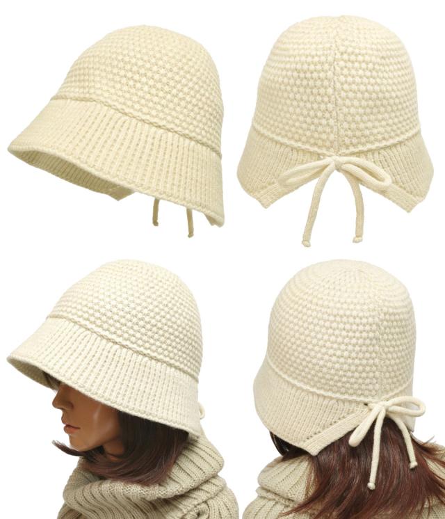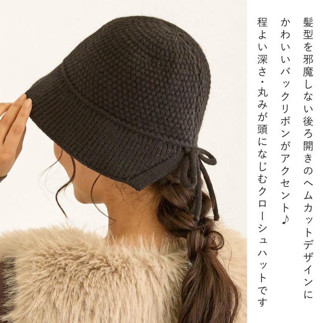 やわらか ニット クロッシェ あったか帽子 深め 髪を結んだままかぶれる レディース ハット 58cm 後ろリボン 秋冬 ニット生地 ヘムカット ベルハット hat-1535 クローシュ 帽子 メトロハット UV 日よけ 防寒 小顔 おしゃれ 可愛い 女性 プレゼント 即納