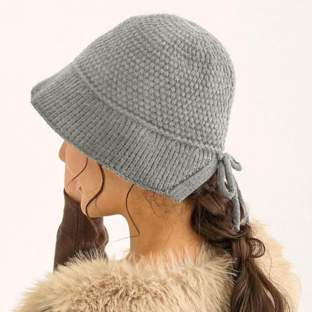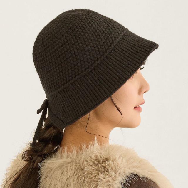 頭部とつば部分で編み方を変えたソフトなニット生地は冬のコーディネートにぴったり