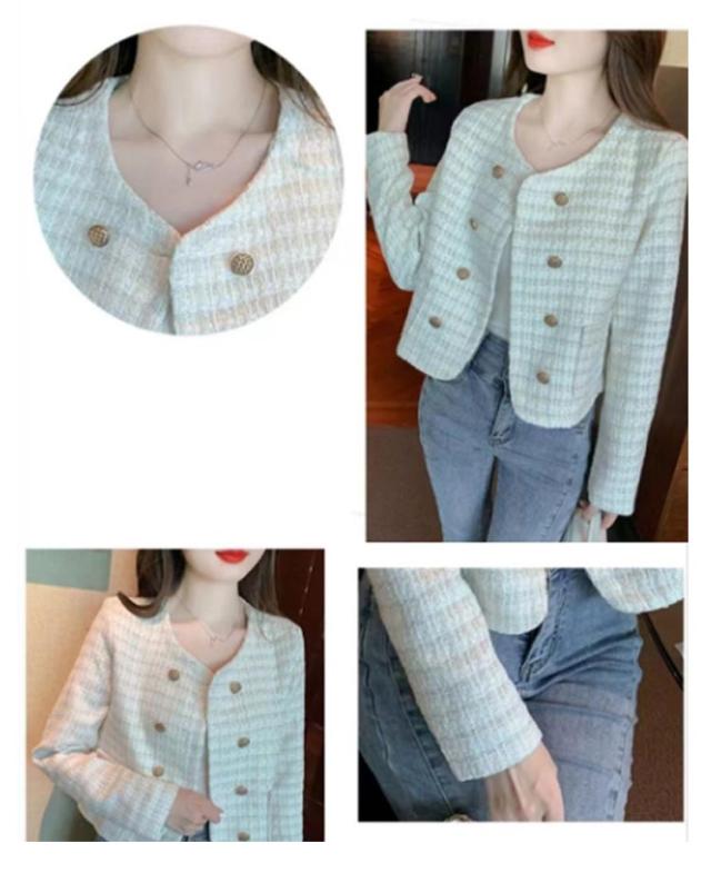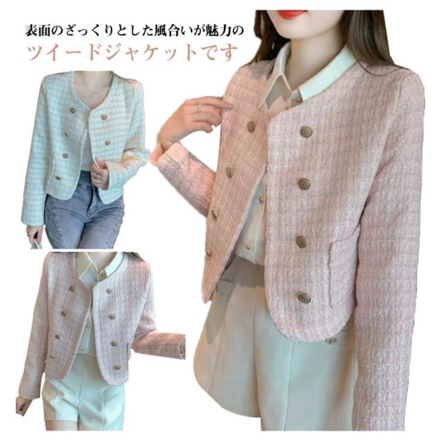 羽織り ノーカラージャケット カジュアル アウター 大人 ツイードジャケット ゴールドボタン ツイード ノーカラー カラーレス ポケット付き ジャケット レディース オフィス フォーマル ビジネス ママスーツ 上品 ツイードジャケット 送料無料 ホワイト