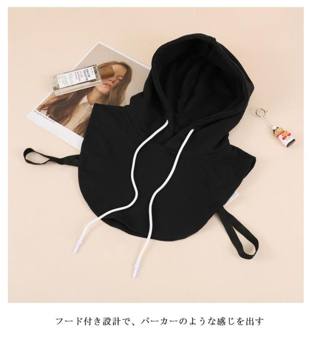| 【フード付き襟】【6color】 カジュアルなコーデにピッタリなフード付き付け襟 肌に優しく、柔らかな生地感 フード付き設計で、パーカーのような感じを出す 普段のカジュアルスタイルにピッタリ セーターともカーディガンなどと相性抜群 | |