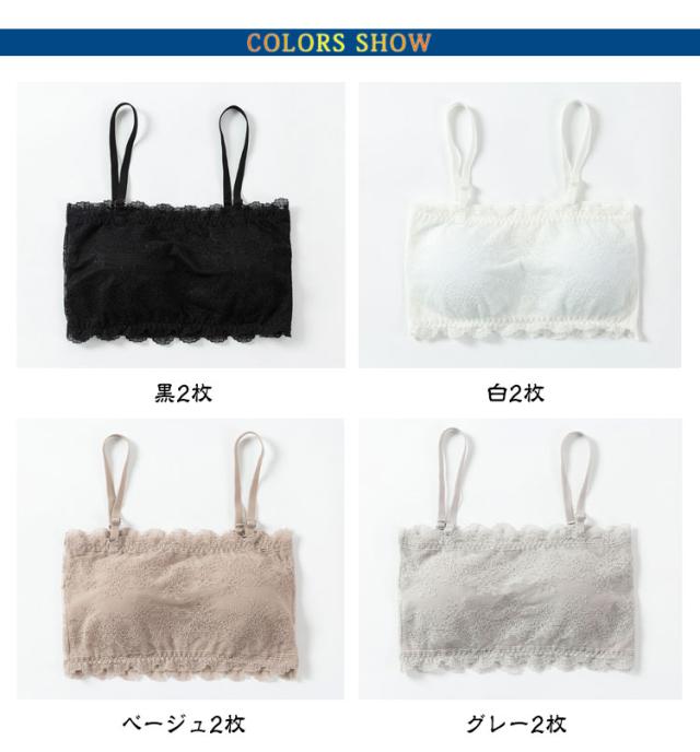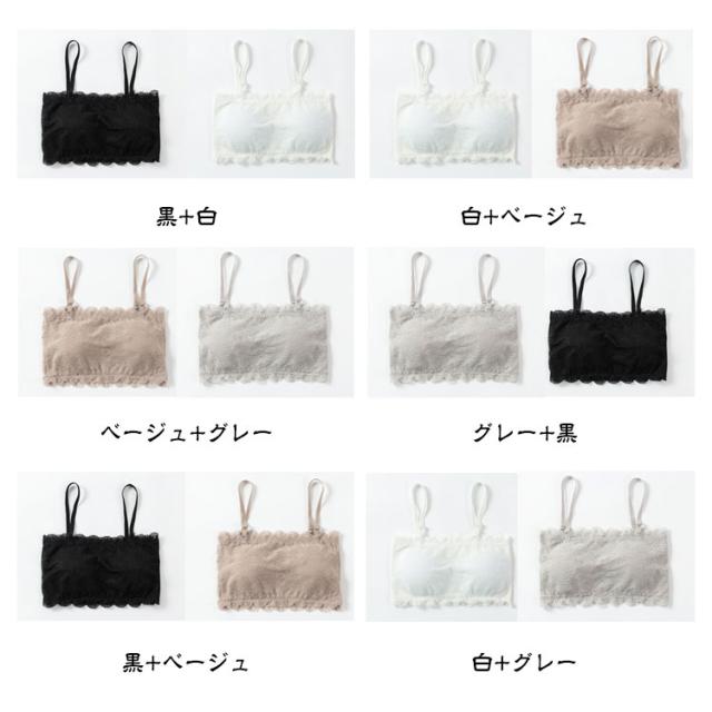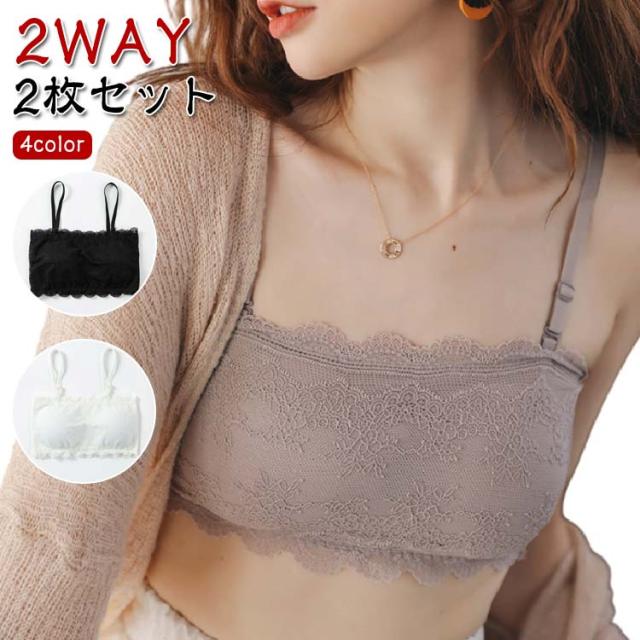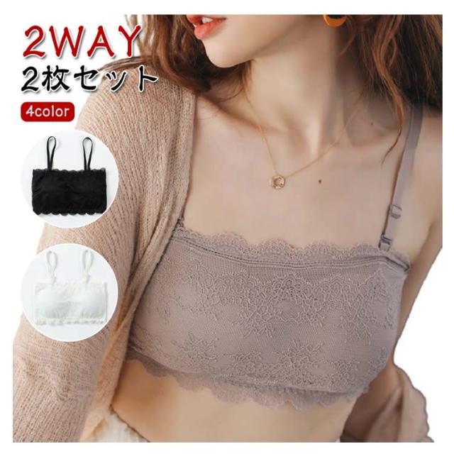 キャミソール 2WAY カップ付き 花柄レース インナー 2枚セット!チューブトップブラ 2枚セット!チューブトップブラ ホワイト 可愛い ブラック グレー ノンワイヤー くすみカラー チューブトップ ブラジャー 下着 ブラトップ