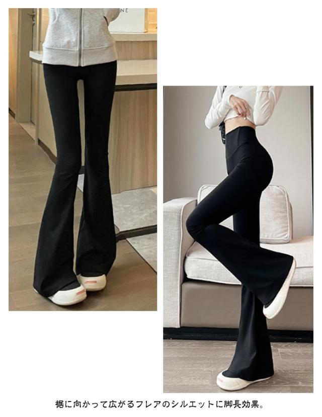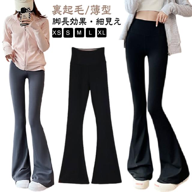 裏起毛/薄型 ロングパンツ ハイウエスト 大きいサイズ 美脚 フレアパンツ 高身長 低身長 ボトムス 無地 伸縮性 ストレッチ フレア フィット レディース 着やせ フレアパンツ パンツ ロング