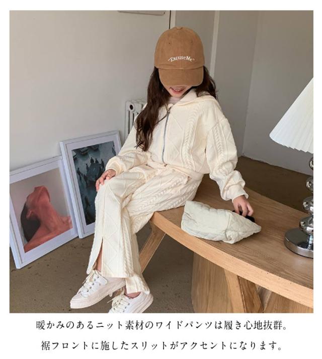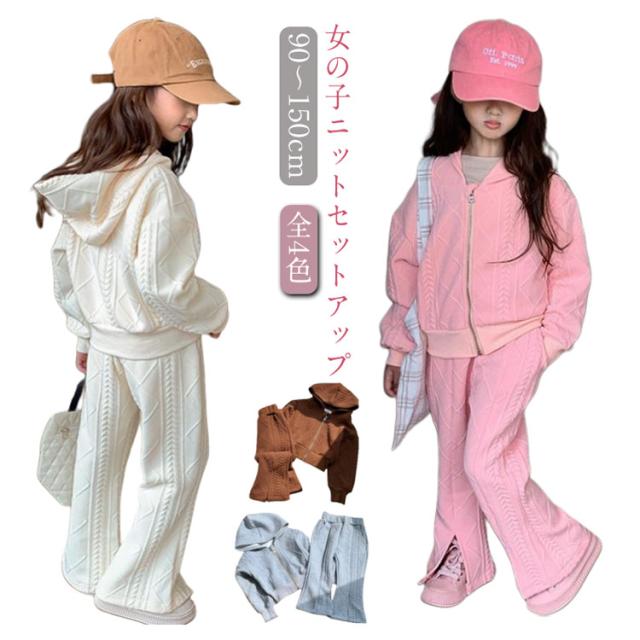 ニットパーカー キッズ服 110 セットアップ 冬 長袖 上下 キッズ 150 女の子 子供服 ケーブル編み 2点セット 90 100 秋冬 120 ニット 140 ニットパンツ あったか 130 フード付き ジップパーカー ワイドパンツ ジュニア かわいい 通園