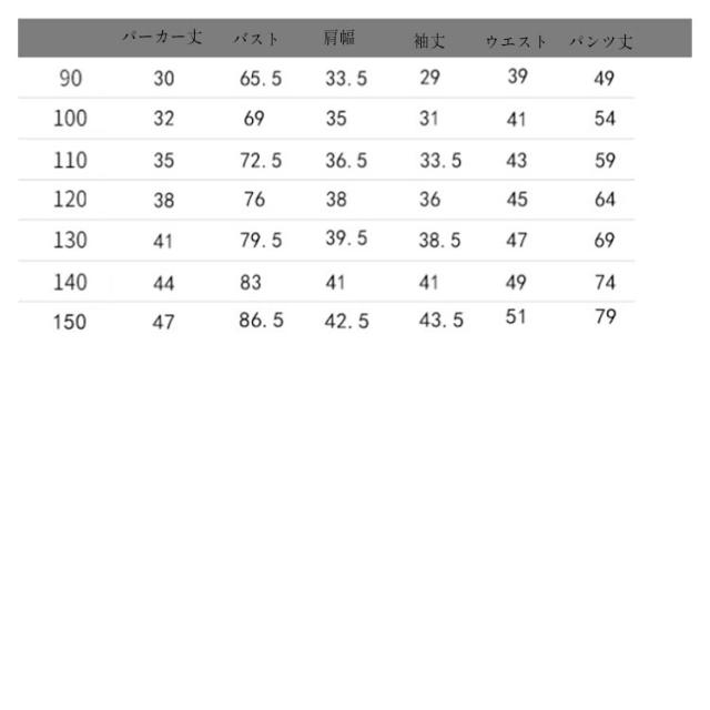 | サイズについての説明 | 90 100 110 120 130 140 150 |