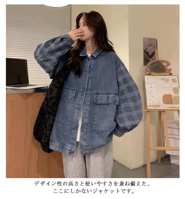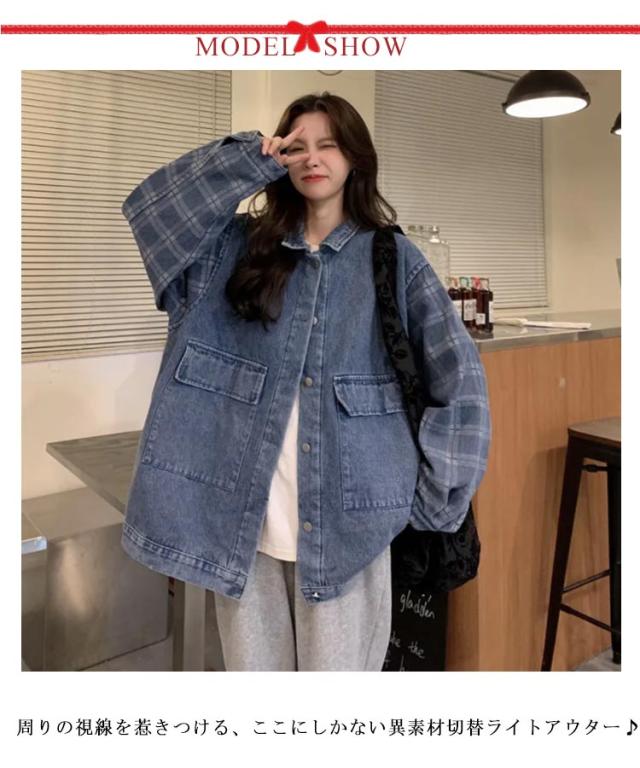 重ね着風 秋 トップス モード系 切り替え ジージャン カジュアル レディース ジャケット 配色 コート シャツジャケット ジュニア 部屋着 ライトアウター 羽織り 男女兼用 春秋着 アウター お洒落 デニム オーバーサイズ 旅行 長袖 通園 通学 旅行
