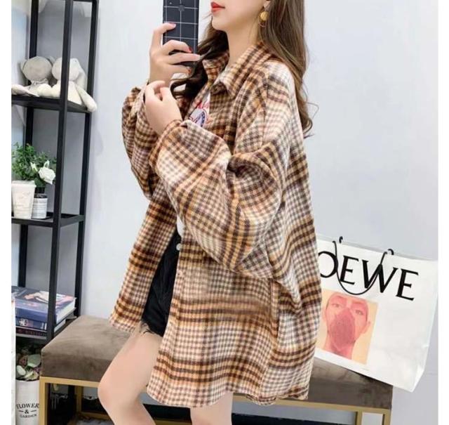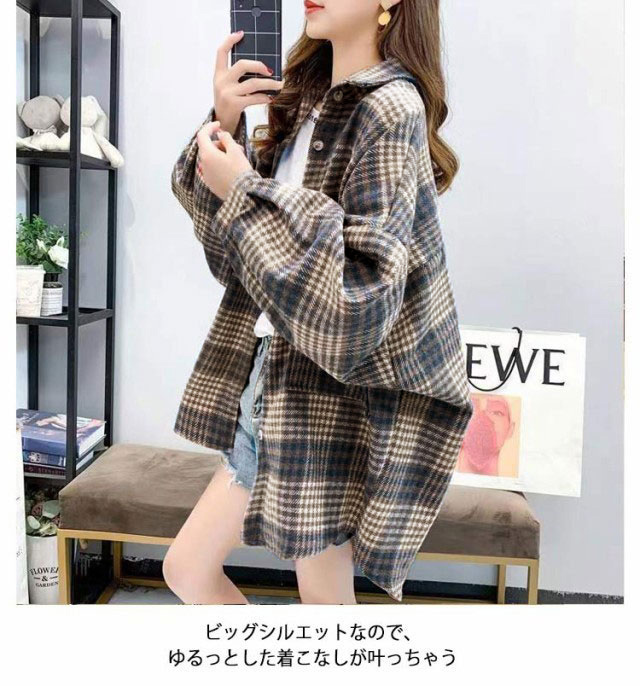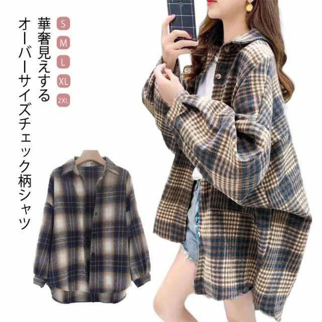 ネルチェック オーバーサイズ ネルシャツ ビッグシャツ ロング丈 お尻が隠れる シャツコート 厚手 長袖 大きいサイズ アウター 大きめ レディース 体型カバー ボリューム袖 チュニックネルシャツ 羽織り 春 秋 冬