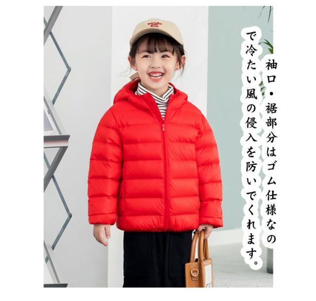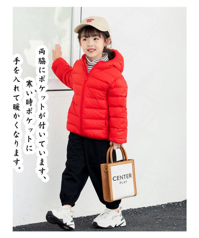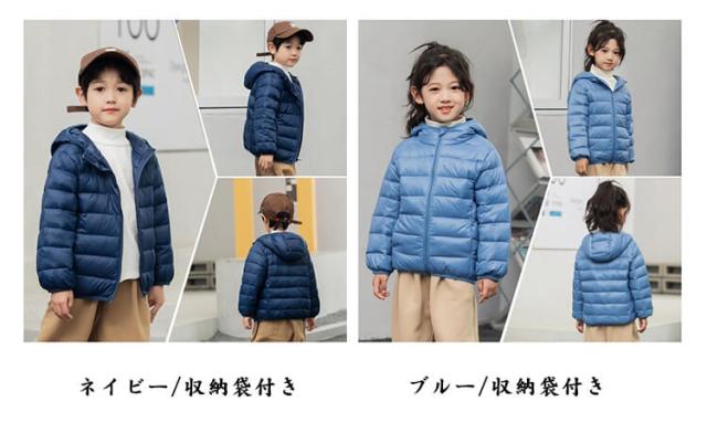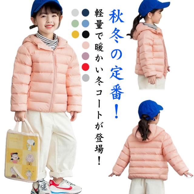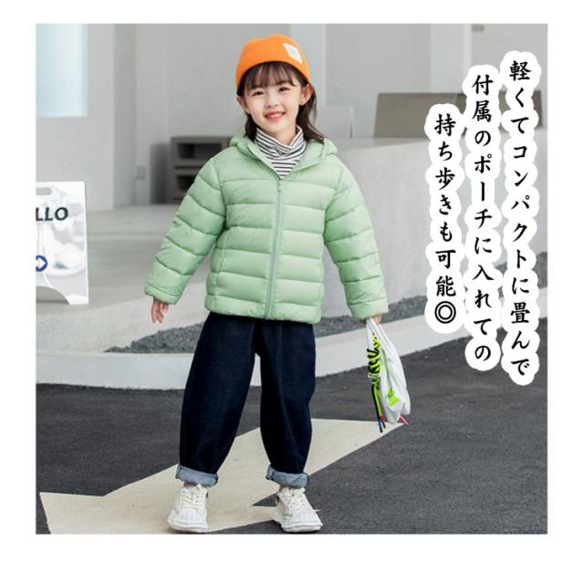 防寒 アウター 子供服 キッズ 無地 あったか アウター 軽い ジャンパー 男の子 女の子 フード付き 長袖 ダウン風コート 防寒 シンプル おしゃれ 防寒 防風 ジッパー フード 収納袋付き 折り畳み ベンチコート