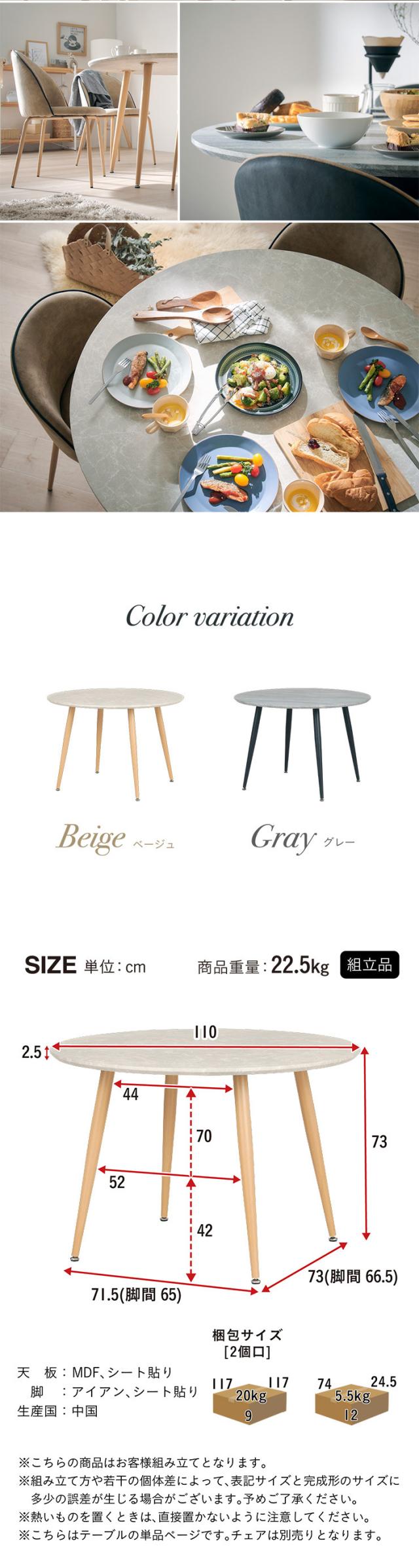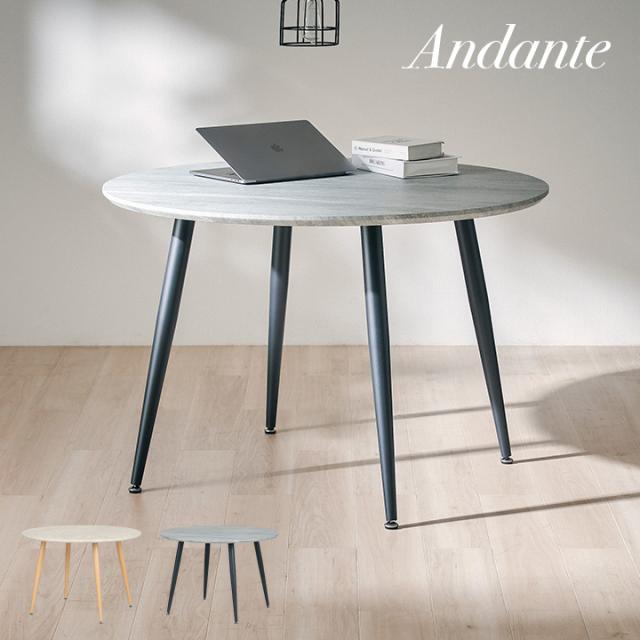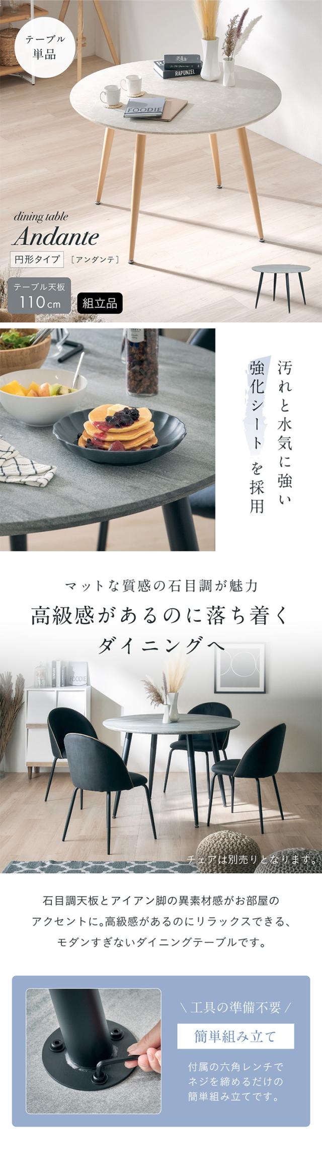 ダイニングテーブル 幅110cm 単品 丸テーブル Andante(アンダンテ) 2色対応 ダイニング テーブル 4人掛け 2人掛け 食卓テーブル ラウンドテーブル 円卓 円形テーブル 石目調 アイアン脚 作業台 おしゃれ モダン