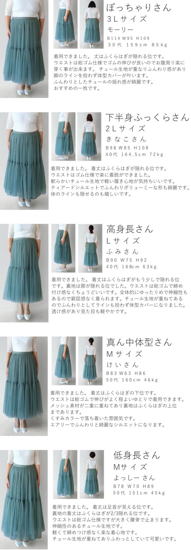 再入荷9月19日 ミントカラーの重なるチュールティアードミディアムスカート cawaii w60927ps S~3L対応 春 秋 冬 体型カバー 伸縮性 日常使い くすみカラー エアリー トレンド感 パーティー レディース ファッション 大人 ママ ミセス 30代 40代 50代