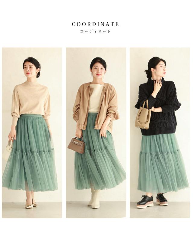 w60927ps 新作 新着 再入荷 CAWAII FRENCHPAVE フレンチパヴェ エレガント ベーシック カジュアル 可愛い かわいい カワイイ おしゃれ オシャレ お洒落 個性 個性的 定番 ベーシック 大人かわいい 大人可愛い 上品 女性らしい デザイン スタンダード ナチュラル きれいめ キレイめ シンプル フェミニン レディース レディースファッション 大人 ママ ミセス 30代 40代 50代 60代 ミントカラー 重なる チュール ティアードミディアム スカート くすみカラー エアリー ウエストゴム ゴム 総ゴム ワンサイズ Sサイズ Mサイズ Lサイズ 2Lサイズ 3Lサイズ フリーサイズ フリー 小さめ 小さめサイズ小さい 小さいサイズ 低身長 痩せ ほっそり 小柄 細身 標準サイズ 大きめシルエット 大きい 大きめ ビッグシルエット ぽっちゃり F サイズ自由 春 秋 冬 秋服 秋物 冬服 冬物 体型カバー 伸縮性 ミントグリーン ワンカラー ワントーン 日常着 普段着 日常使い おでかけ 旅行 休日 トレンド感 パーティー