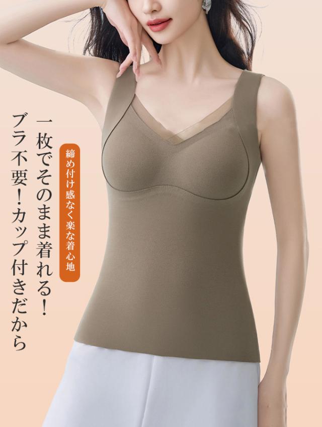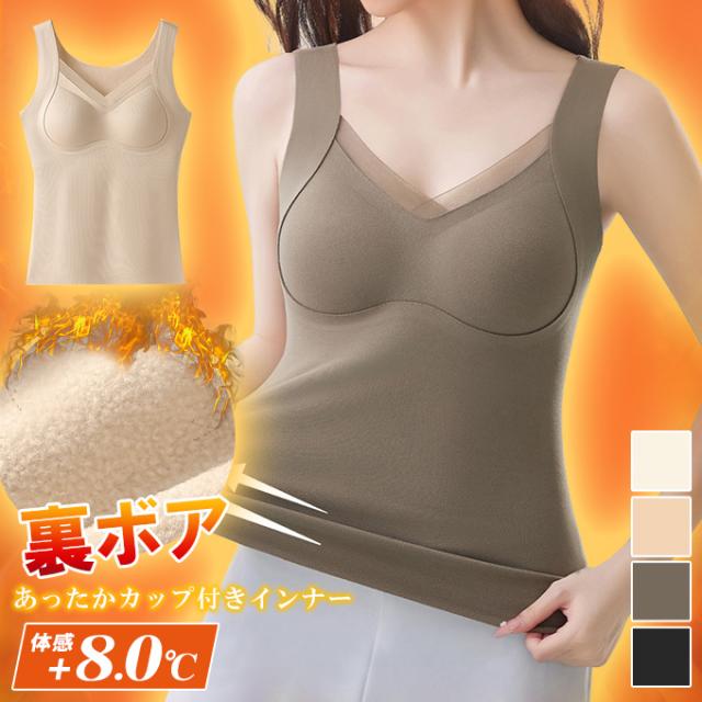 裏ボア カップ付きタンク 表ふわもち起毛 レース インナー トップス シームレス 軽量 裏起毛タンクトップ あったかインナー 大きいサイズ レディース 防寒 暖か 伸縮性 冷え防止 母の日