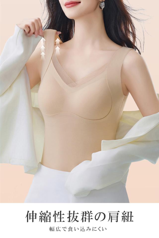 1枚で着れる柔らか肌触りのカップ付きタンクです。