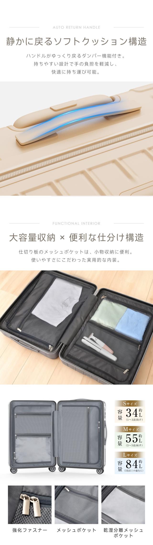隠しフックなど様々な旅途中に約立つアイテムを搭載し、全ての需要に満たす最新仕様のスーツケースです。