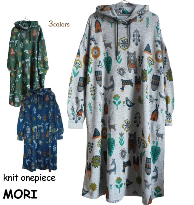 ほっこり可愛い★森のどうぶつ柄のニットパーカーワンピ!