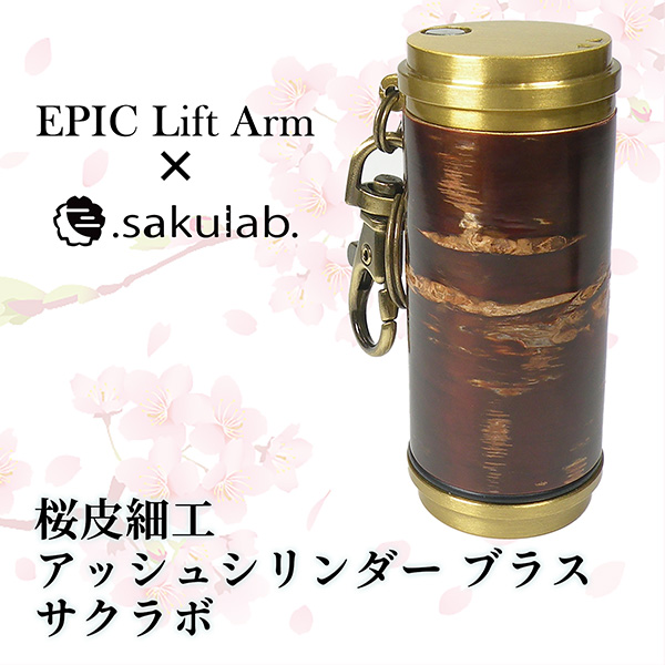 携帯灰皿 アッシュシリンダー ブラス サクラボ 樺細工 桜皮細工 sakulab 伝統工芸 アルミ製 軽量 スライド式 アッシュトレイ ペンギンライター