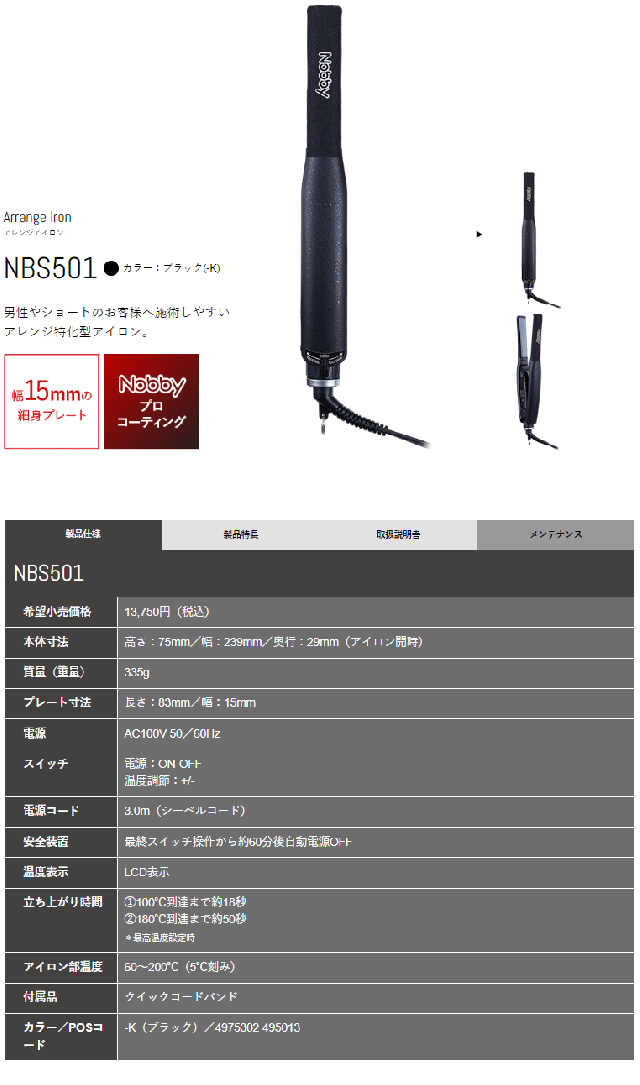 Nobby ノビー / NBS501 ブラック / アレンジアイロン【3個セット】/ 男性やショートのお客様へ施術しやすいアレンジ特化型アイロン。