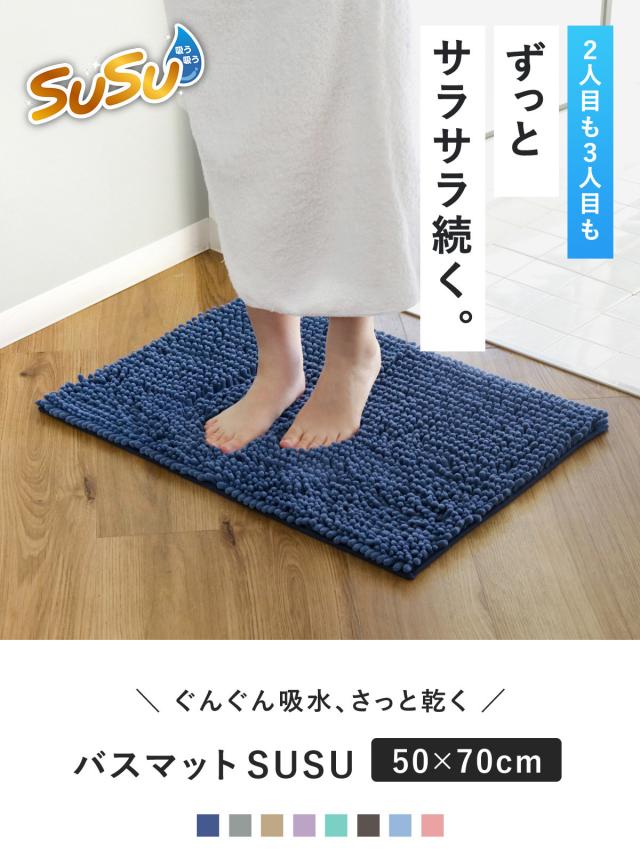 バスマット SUSU 抗菌ストロングW 50×70cm 速乾 ( バス マット 吸水 大判 マイクロファイバー 吸水速乾 抗菌 滑り止め 洗える 洗濯可 お風呂 浴室 丸洗い )