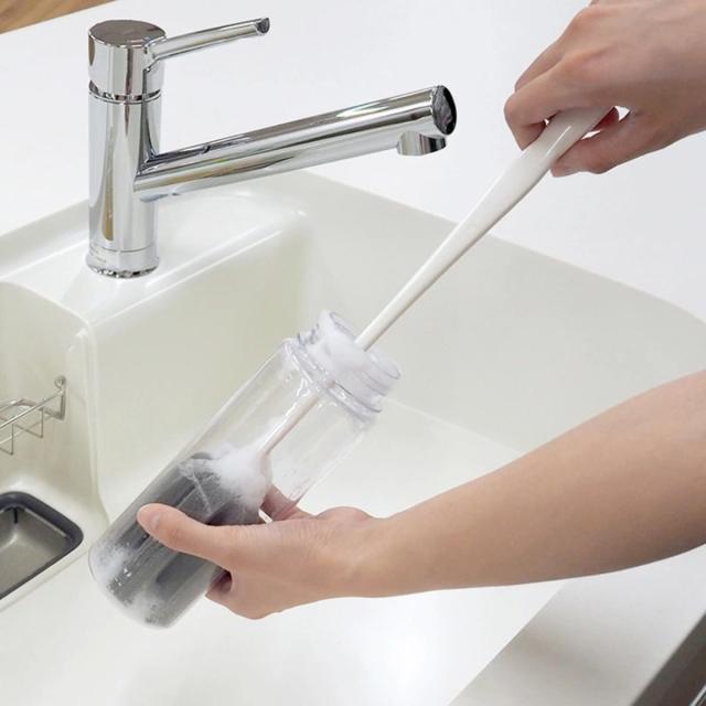 ●ボトル・コップの底まで洗えるロング柄タイプのボトル洗いです。