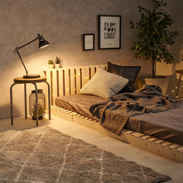 パレットを2枚追加してヘッドボードに、4枚追加してステージベッドにと自分好みにアレンジして、より快適に過ごしていただけます。
