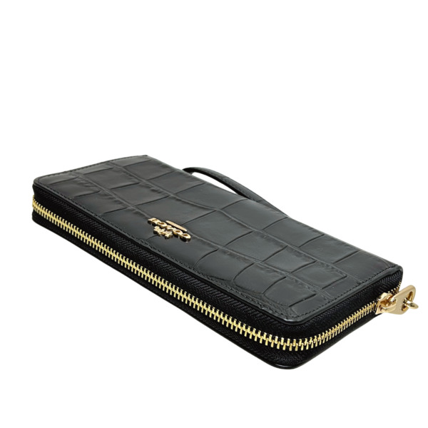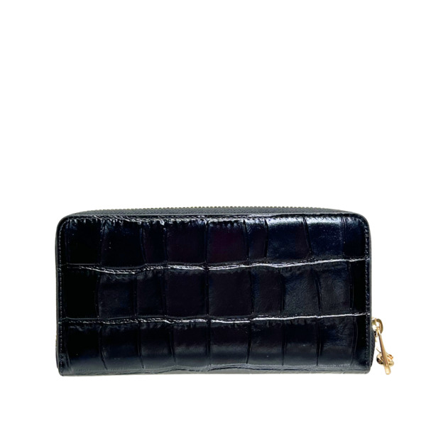 クロコダイル エンボスド レザー ロング ジップ アラウンド ウォレット