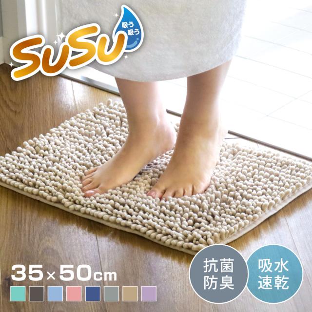 バスマット SUSU 抗菌ストロングW 35×50cm 速乾 ( バス マット 吸水 マイクロファイバー 吸水速乾 抗菌 滑り止め 洗える 洗濯可 お風呂 浴室 丸洗い )