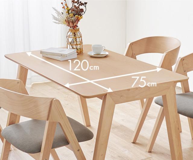 幅120cmの天板サイズは広いスペースがとれない場合でも取り入れやすい大きさです。コンパクトでありながら大人4人しっかりと座っていただけます。