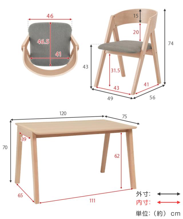 | 材質 | テーブル:天然木化粧繊維板 チェア:天然木(ビーチ材)、ポリエステル、ウレタンフォーム |