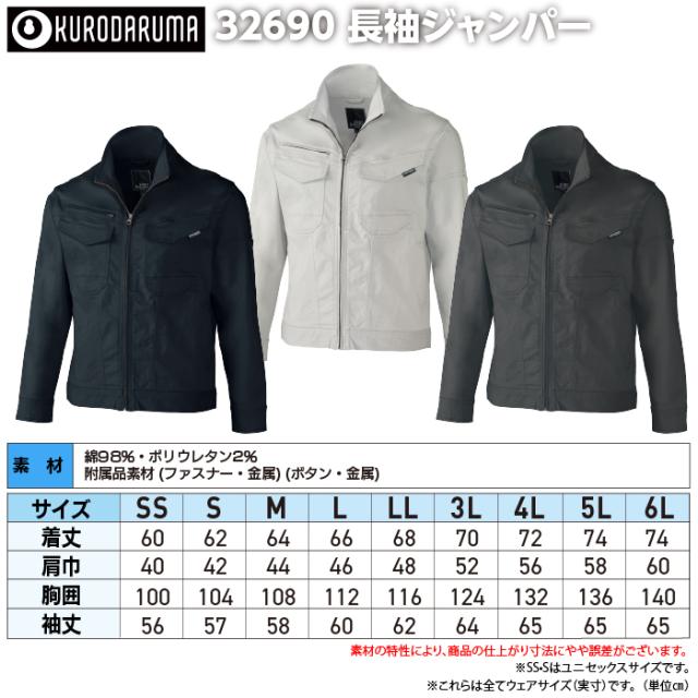 クロダルマ 作業服 32690 長袖ジャンパー 6L 秋冬用 作業着