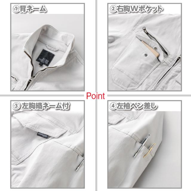 ◇機能:背ネーム・右胸Wポケット(ファスナー・雨蓋付ドットボタン隠し)・左胸織ネーム付・左袖ペン差し・ノーフォーク・ストレッチ素材