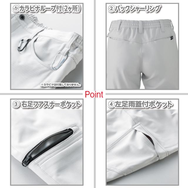 ◇機能:膝ダーツ・左ベルトループ部分カラビナループ付(2ヶ所)・バックシャーリング・右足ファスナーポケット・左足雨蓋付ポケット・消臭テープ・JIS T-8118静電気帯電防止作業服