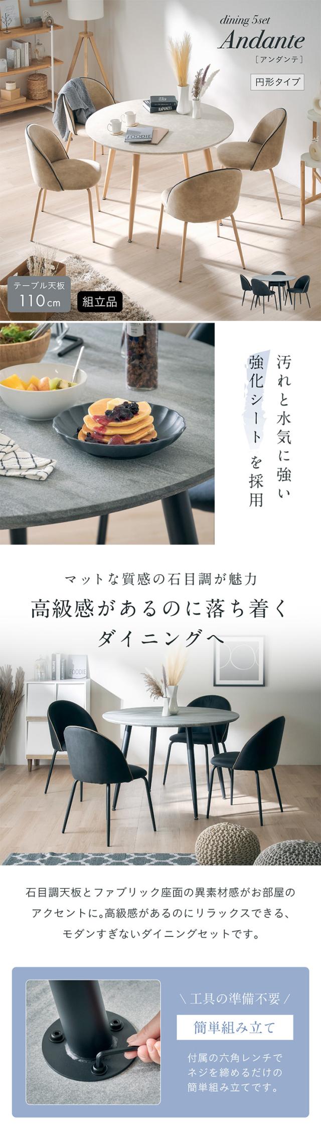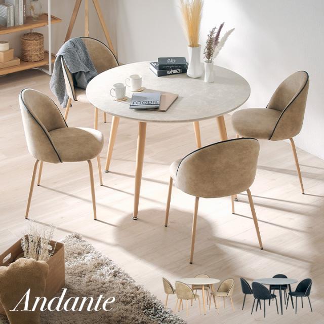ダイニングセット ダイニングテーブル ラウンドテーブル 丸テーブル 円テーブル ダイニングチェア 4人掛け おしゃれ シンプル 北欧 ナチュラル Andante(アンダンテ) 5点セット 円形タイプ 幅110cm 2色対応