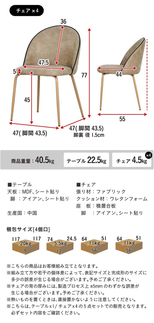 ※テーブル・チェアの5点セットでの販売となります。