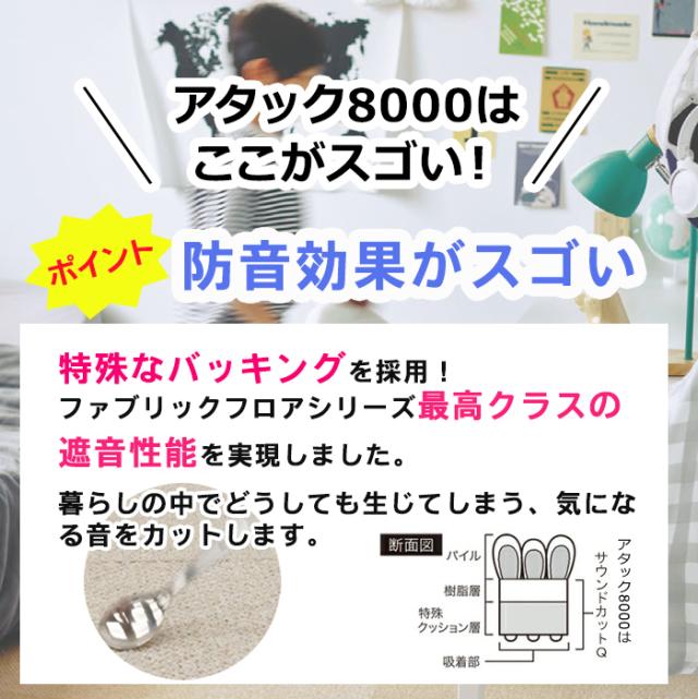 | 【洗える】東リタイルカーペット ファブリックフロア アタック8000 約40×40cm |