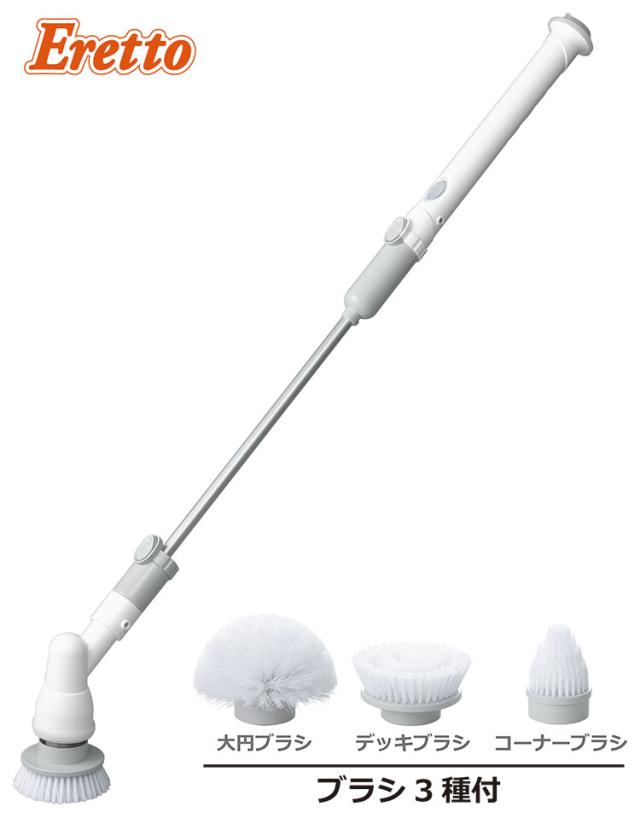 エレット 充電式ロングポリッシャー 電動ポリッシャー ロングポリッシャー 高所 低所 掃除 スティックタイプ ET-05 ブラシ ハンディタイプ ブラシ3点付き 充電式 コードレス お風呂 浴槽 床