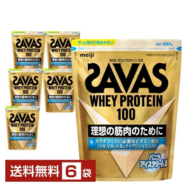 明治 ザバス ホエイプロテイン100 バニラアイスクリーム風味 980g×6袋 送料無料