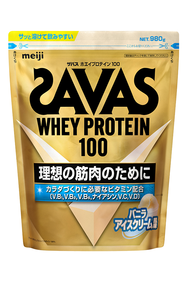 | 理想の筋肉のために、 WHEY PROTEIN 100 明治 ザバス ホエイプロテイン100 バニラアイスクリーム風味 980g カラダづくりに必要なビタミン配合 (V.B1、V.B2、V.B6、ナイアシン、V.C、V.D) |