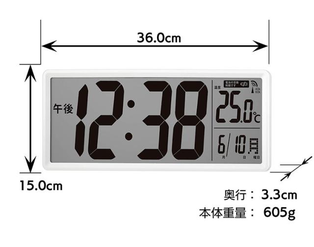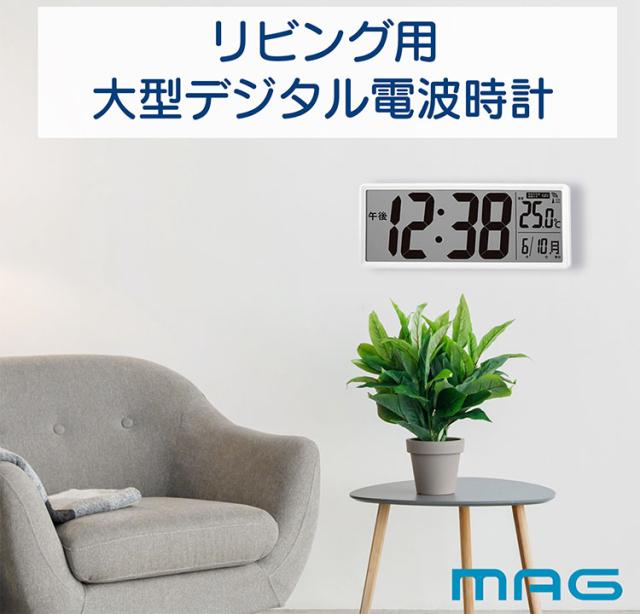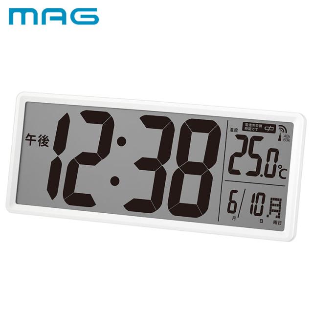 MAG 掛け時計 壁掛け時計 置き時計 デジタル 電波時計 温度計 シンプル インテリア リビング カウンター 大型 大きい 15×36cm 置き掛け兼用 ホワイト クリアビュー W-814 WH-Z ノア精密【送料無料